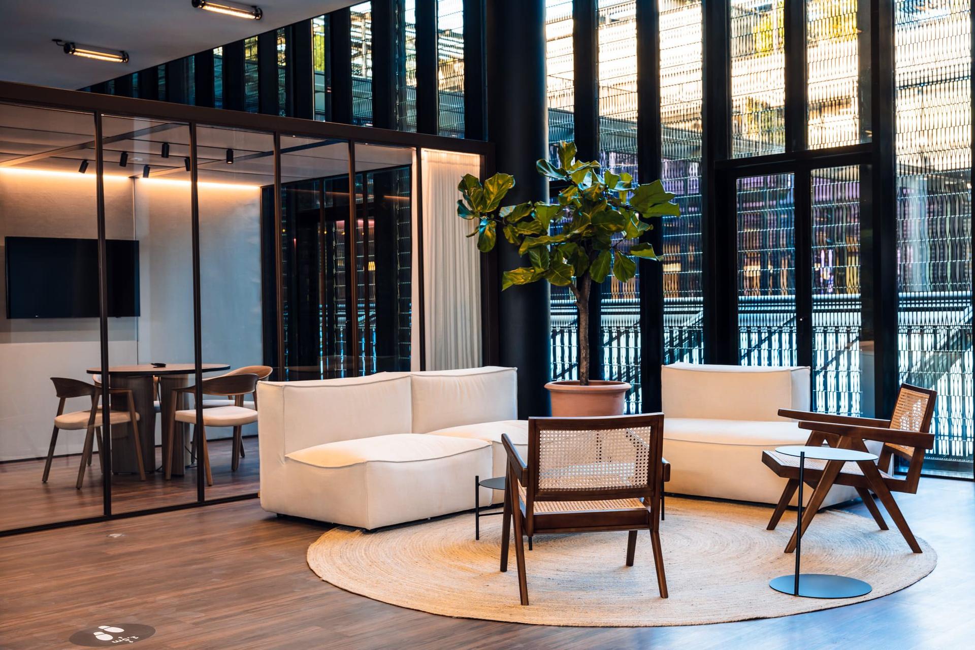 Our strategy was guided from the outset by several key objectives, including the design of spaces dedicated to creativity, and places to recharge one's batteries. Quality of life at work was a priority in our shared vision, so we designed spaces that inspire both performance and satisfaction. The tenets of Wabi Sabi served as the foundation for all the project's architectural and decorative choices, with simplicity and minimalism as drivers in the design.